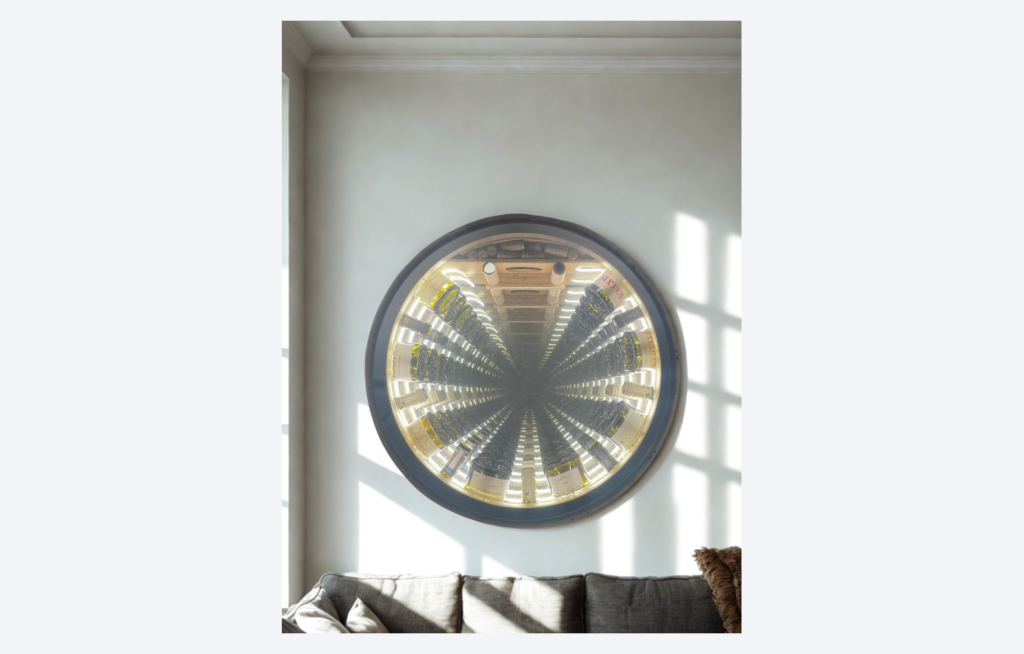 À la croisée de l’illusion lumineuse et de la mémoire, Cavæterna invite ce qui demeure, une fois l’instant passé, à habiter l’espace autrement. Le reflet infini, ancré dans l’authenticité d’un tonneau, lui donne une présence nouvelle, entre réalité et suggestion.